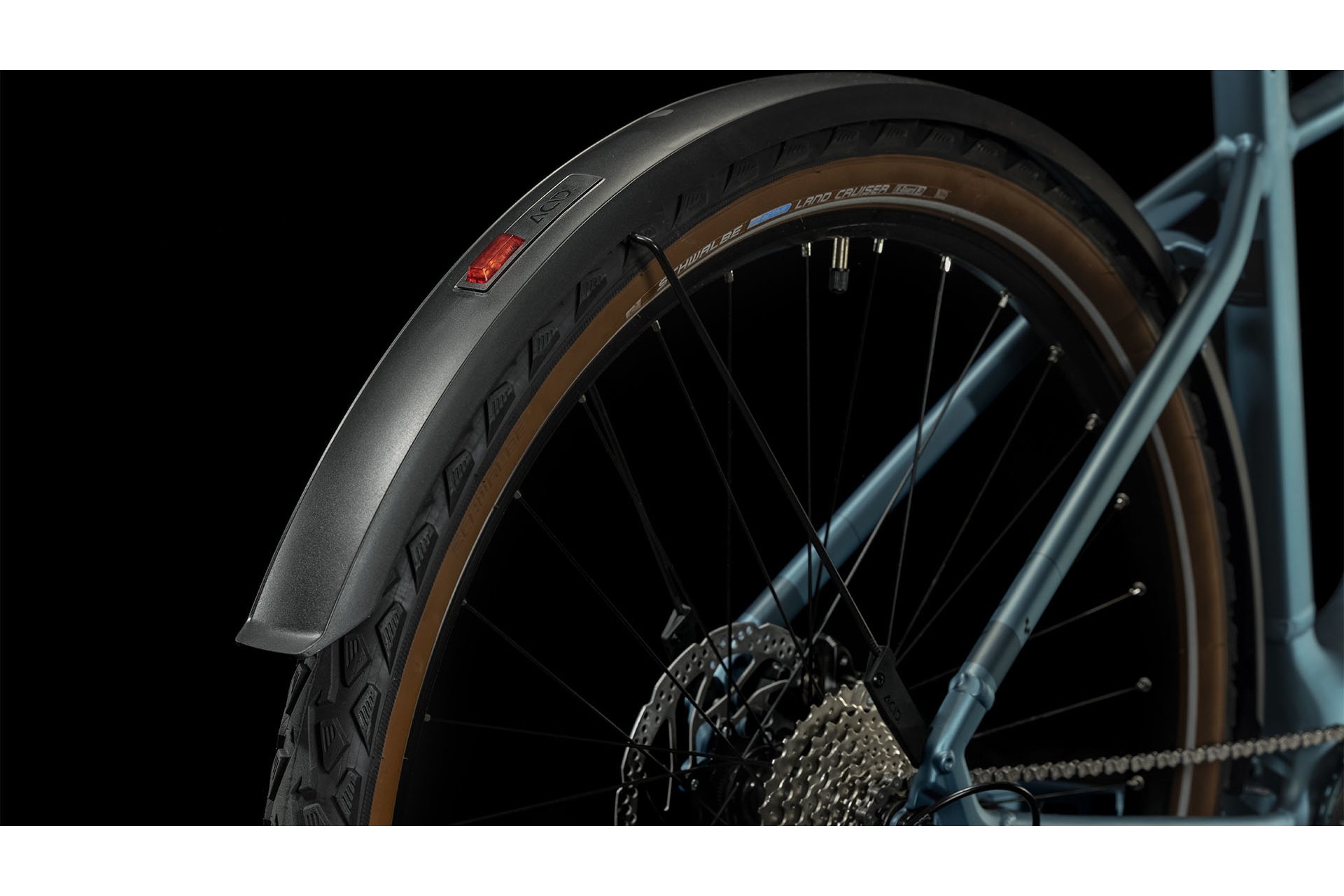 Allroad-Ausstattung: Schutzbleche, Beleuchtung und Gepäckträger serienmäßig.